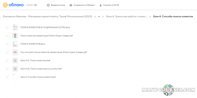 Вы находитесь на странице товара «Екатерина Иванова - Менеджер маркетплейса. Тариф Минимальный», это материал 2023 года, который, мы надеемся, принесет вам пользу. Данный курс расположен на платформе «Облако Mail».Скриншоты с платформы на которой расположены материалы вы можете найти выше. В нашем магазине курсы доступны по самым выгодным ценам. Вы можете перейти на оригинальный продажник, после чего принять решение о покупке. Если бы вы покупали у самого автора, то данный курс вам обошелся 22000 рублей. Вы получаете этот курс, купив в нашем магазине MANY-COURSES.NET, с огромной скидкой, всего 890 рублей. Обучающий курс входит в рубрику «Бизнес, менеджмент, продажи / Wildberries / Ozon», вы можете поискать другие сливы курсов в этой рубрике. В нашем магазине Вы найдёте ещё много курсов от автора «Екатерина Иванова», достаточно ввести в поиск имя автора.