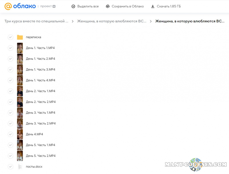 Вы находитесь на странице товара «Вероника Хацкевич - Три курса вместе по специальной цене», это материал 2022 года, который, мы надеемся, принесет вам пользу. Данный курс расположен на платформе «Облако Mail».Скриншоты с платформы на которой расположены материалы вы можете найти выше. В нашем магазине курсы доступны по самым выгодным ценам. Если бы вы покупали у самого автора, то данный курс вам обошелся 18900 рублей. Вы получаете этот курс, купив в нашем магазине MANY-COURSES.NET, с огромной скидкой, всего 430 рублей. Обучающий курс входит в рубрику «Эзотерика и оккультизм / Психология», вы можете поискать другие сливы курсов в этой рубрике. В нашем магазине Вы найдёте ещё много курсов от автора «Вероника Хацкевич», достаточно ввести в поиск имя автора.