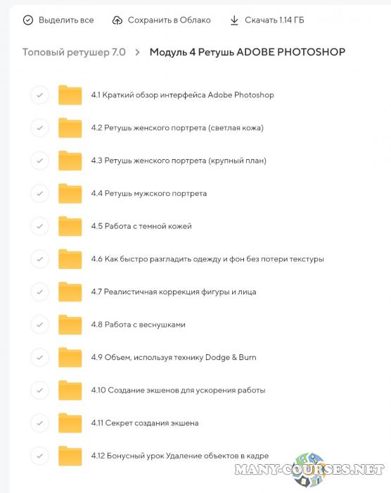 Вы находитесь на странице товара «Амир Агаев - Топовый ретушер 7.0 Тариф Знания (2023)», это материал 2024 года, который, мы надеемся, принесет вам пользу. Данный курс расположен на платформе «Облако Mail».Скриншоты с платформы на которой расположены материалы вы можете найти выше. В нашем магазине курсы доступны по самым выгодным ценам. Вы можете перейти на оригинальный продажник, после чего принять решение о покупке. Вы получаете этот курс, купив в нашем магазине MANY-COURSES.NET, с огромной скидкой, всего 1400 рублей. Обучающий курс входит в рубрику «Видео и фото», вы можете поискать другие сливы курсов в этой рубрике. В нашем магазине Вы найдёте ещё много курсов от автора «Амир Агаев», достаточно ввести в поиск имя автора.